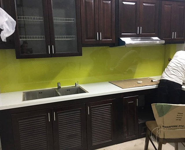 Sản phẩm kính ốp bếp màu vàng chanh phù hợp với không gian bếp thiếu ánh sáng và ẩm thấp, sử dụng sản phẩm sẽ làm cho gian bếp chở lên ấm cúng, sáng rộng không gian hơn. Dưới đây là một số mẫu kính ốp bếp màu vàng chanh được Hải Long Glass thi công trong thời gian qua:
