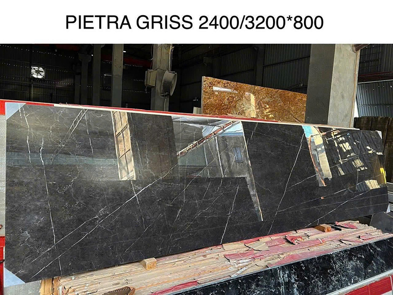 Đá Marble Pietra Grey là một loại đá cẩm thạch màu xám đen với các đường vân trắng đan xen theo các hướng và kích cỡ khác nhau. Đá có độ cứng ở mức trung bình, độ bóng rất cao, độ rỗng rất thấp, do đó, bạn không phải lo lắng về đá bị ngấm ố và mất độ bóng như những dòng đá marble thông thường.